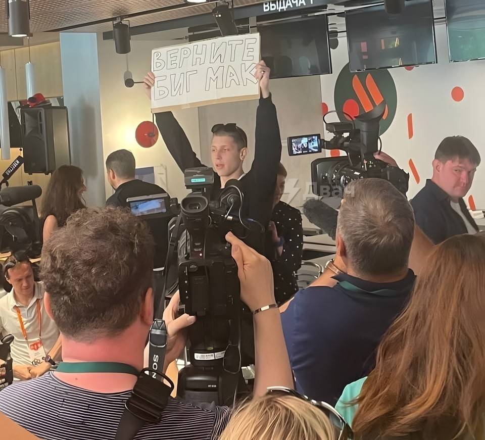 Как только жители России узнали про новое название известной сети ресторанов, то пошли и шутки. Однако первым мемом о «Вкусно и точка» стал парень на кассе, который устроил одиночный пикет и просил вернуть в меню культовый бургер «Биг Мак».