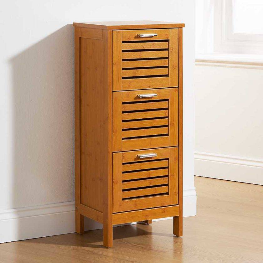 Шкаф-пенал в ванную комнату напольный с корзиной для грязного белья