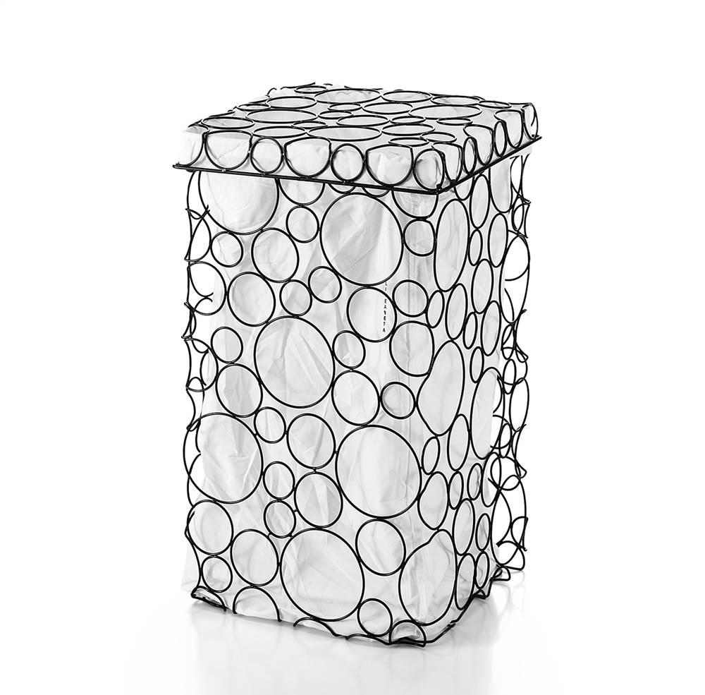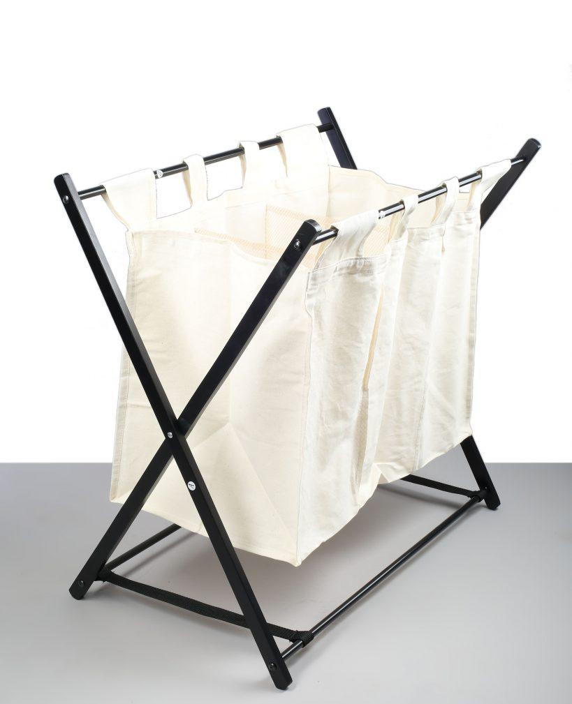 Среди текстильных контейнеров наблюдается еще большее разнообразие дизайна и форм. Общей чертой для них является только основа из натуральной или синтетической ткани. Текстиль – неоднозначный материал с точки зрения практичности. В сухом помещении тканевый мешок будет вполне удобным хранилищем для грязных вещей. Но при постоянной влажности материя начнет впитывать воду. Если регулярно не просушивать контейнер, возможно появление плесени, грибка, неприятного запаха.