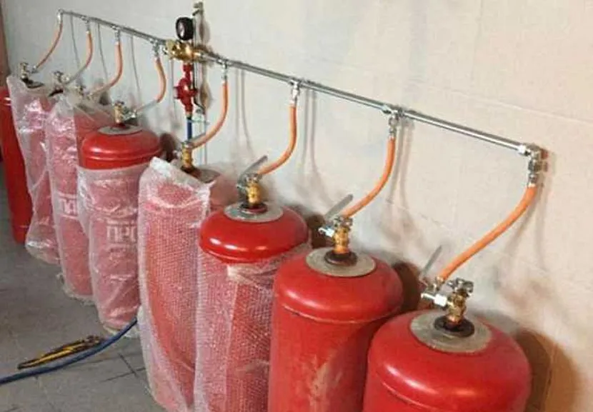 В каком-либо отдельном помещении или в специально сооруженном утеплённом шкафу на улице нужно сделать коллектор. Для этого подойдёт труба из нержавеющей или обычной стали, меди или латуни, к которой с одной стороны по её длине привариваются штуцеры для подключения баллонов, а с другой – выход на понижающий редуктор. Естественно, что этот коллектор жестко фиксируется к стене и от него уже идёт подводка к котлу. В большинстве случаев используются стальные трубы из черного металла диаметром 2/4 или 3/4 дюйма. В любом случае можно использовать редукционные фитинги для перехода с одного размера – на другой.