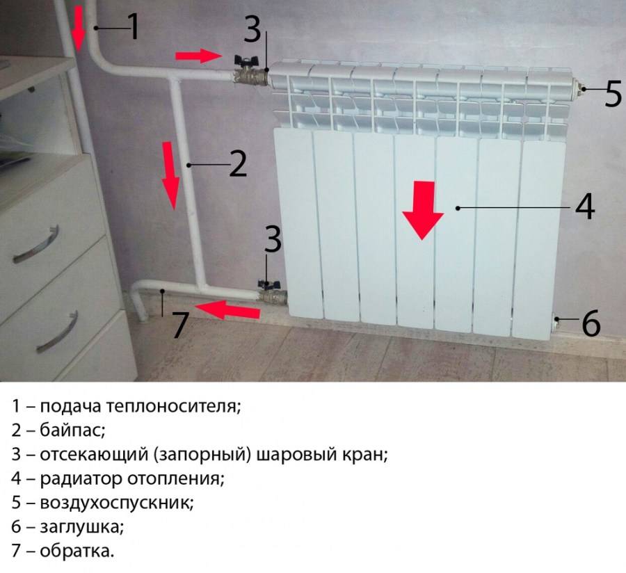 Это приведет к тому, что жидкость пойдет по обходному пути, а не через основную магистраль. Таким образом, отопление в целом отключать не нужно, а батареи меняются и ремонтируются, не мешая работе отопительной системы в целом.