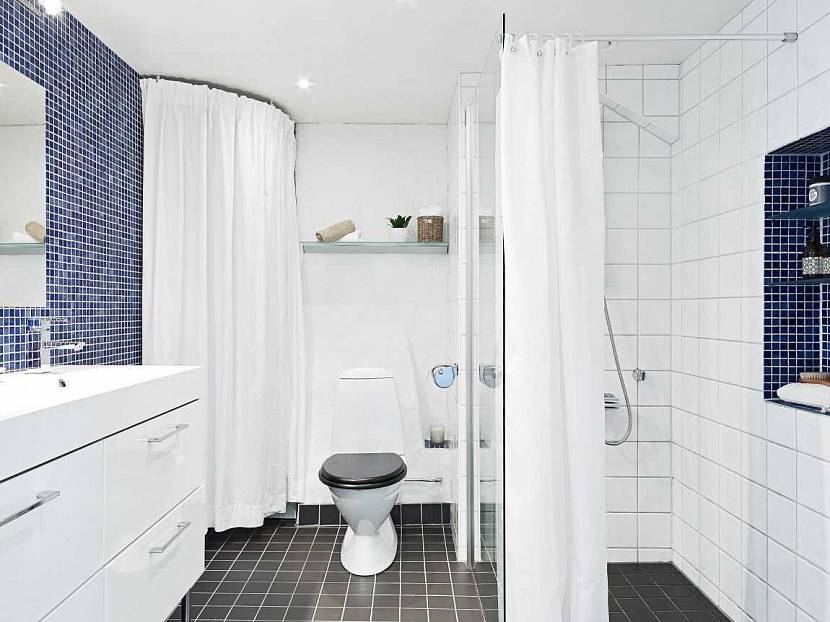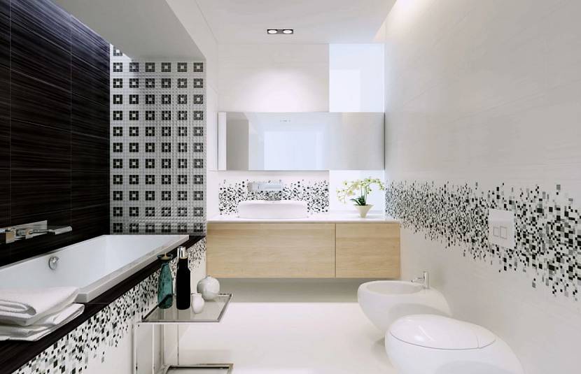 Так, при отделке небольших помещений рекомендуют использовать плитки маленьких размеров, 15х15 или 20х20 сантиметров. При этом черным должно быть не более трети площади. Остальное – светлые тона и яркие вставки.