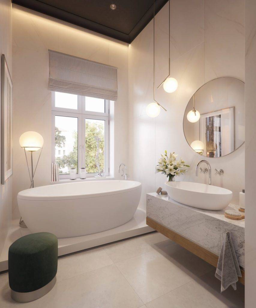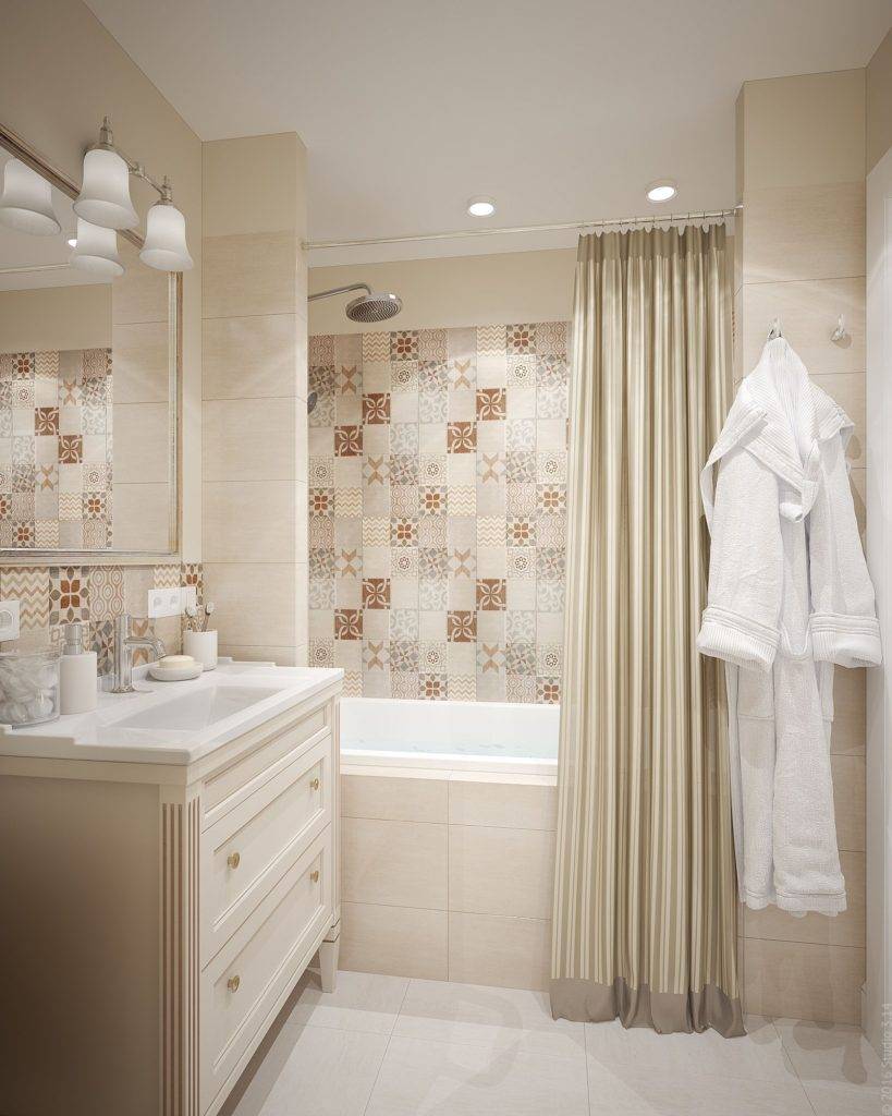 Бежевый является надежной базой. Они выглядят нейтрально, не перегружает интерьер, а его теплые оттенки смягчают холодную природу керамики в ванной. Цвета, относящиеся к цветам земли, приносят спокойствие, успокаивают, способствуют романтической ванне и домашним SPA-процедурам.