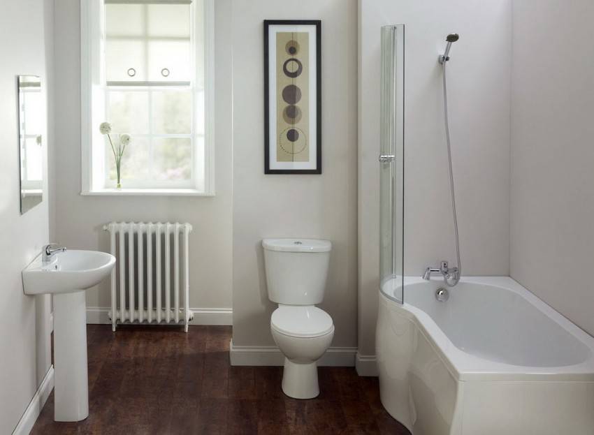 Если вы планируете сделать стены в светлой гамме, то пол может быть темным, но сантехника при этом должна быть в светлых палитрах.