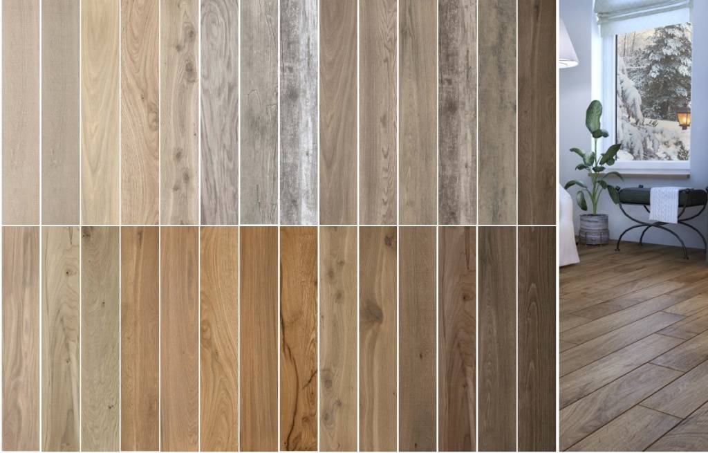 Плиточный материал с имитацией фактуры дерева делят на 3 вида: