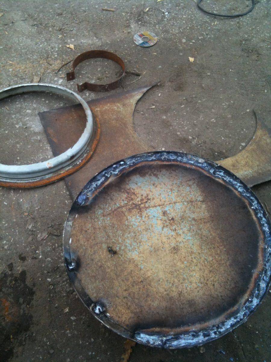 Из стали дно вырезалПримеряю дно. Все вырезано аккуратно и соединяется почти без зазоровДонце на месте