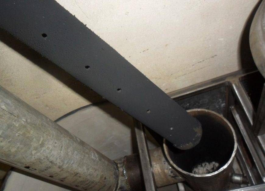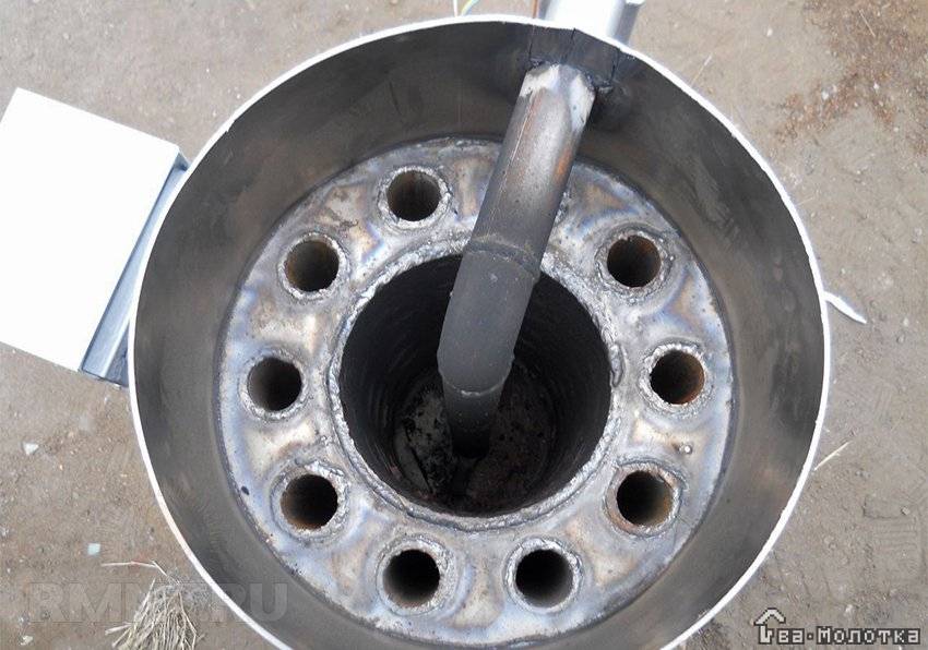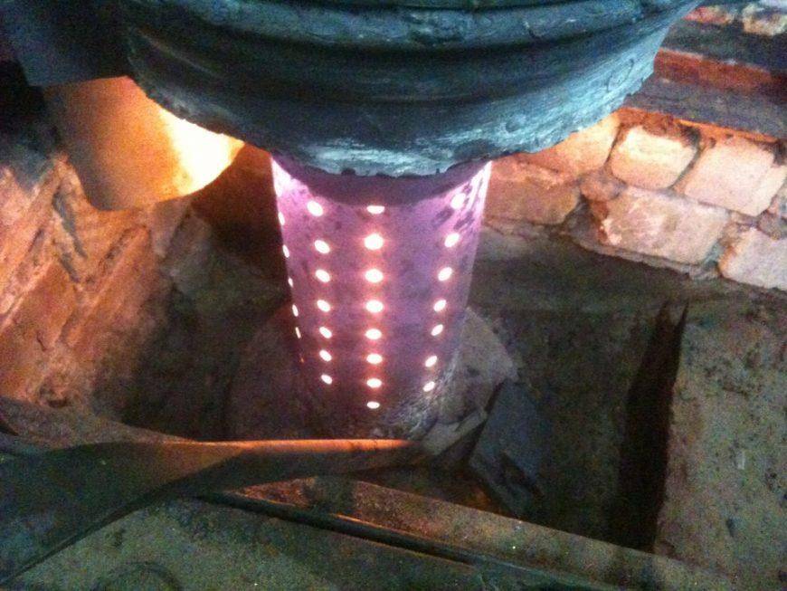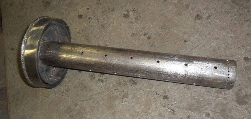 Понятно, что если просто зажечь масло, помещение моментально наполнится едким дымом, и находиться в нём не будет возможности. Этот вопрос и решает вставыш – перфорированная труба. Разберёмся в принципе работы агрегата.