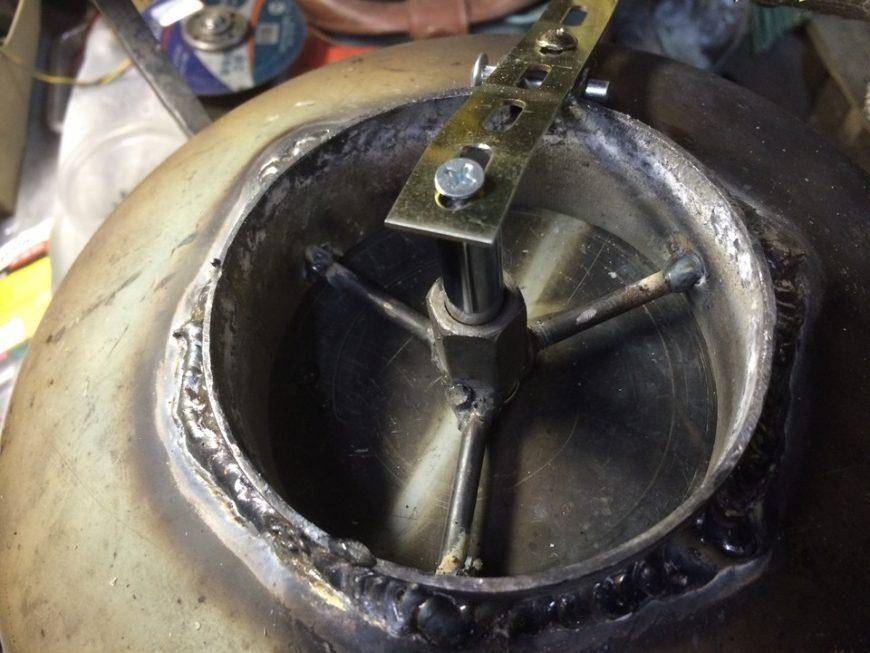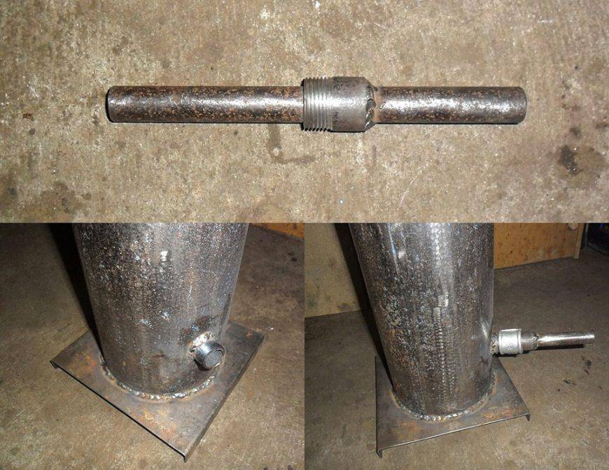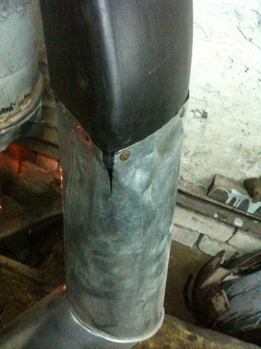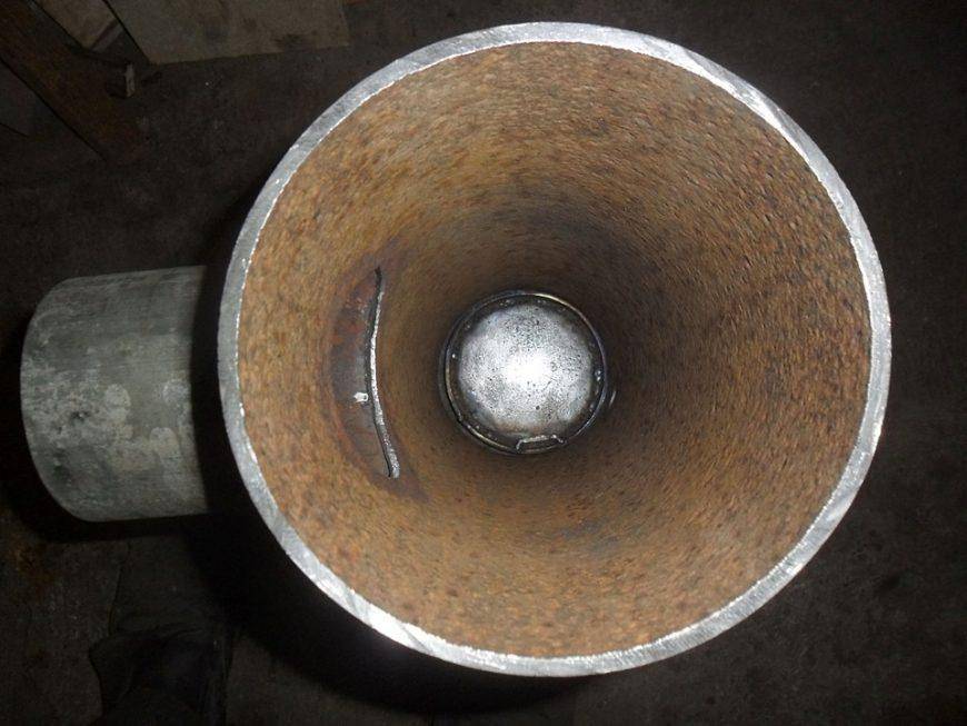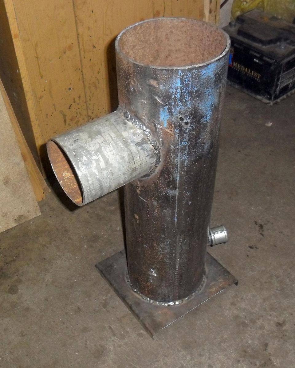- Сверху него приваривается патрубок, который будет соединяться с дымоходом.