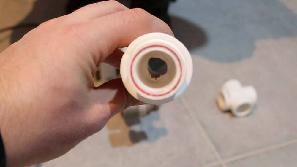 - Вырезают основной участок вертикальной трубы. Оценивают состояние тройника. Если он не поврежден, выполняется расшивка шва на стыке участков трубопровода. Затем извлекают торец гладкостенной трубы, которая была ранее срезана. Раструб тройника подготавливают к подсоединению новых коммуникаций.