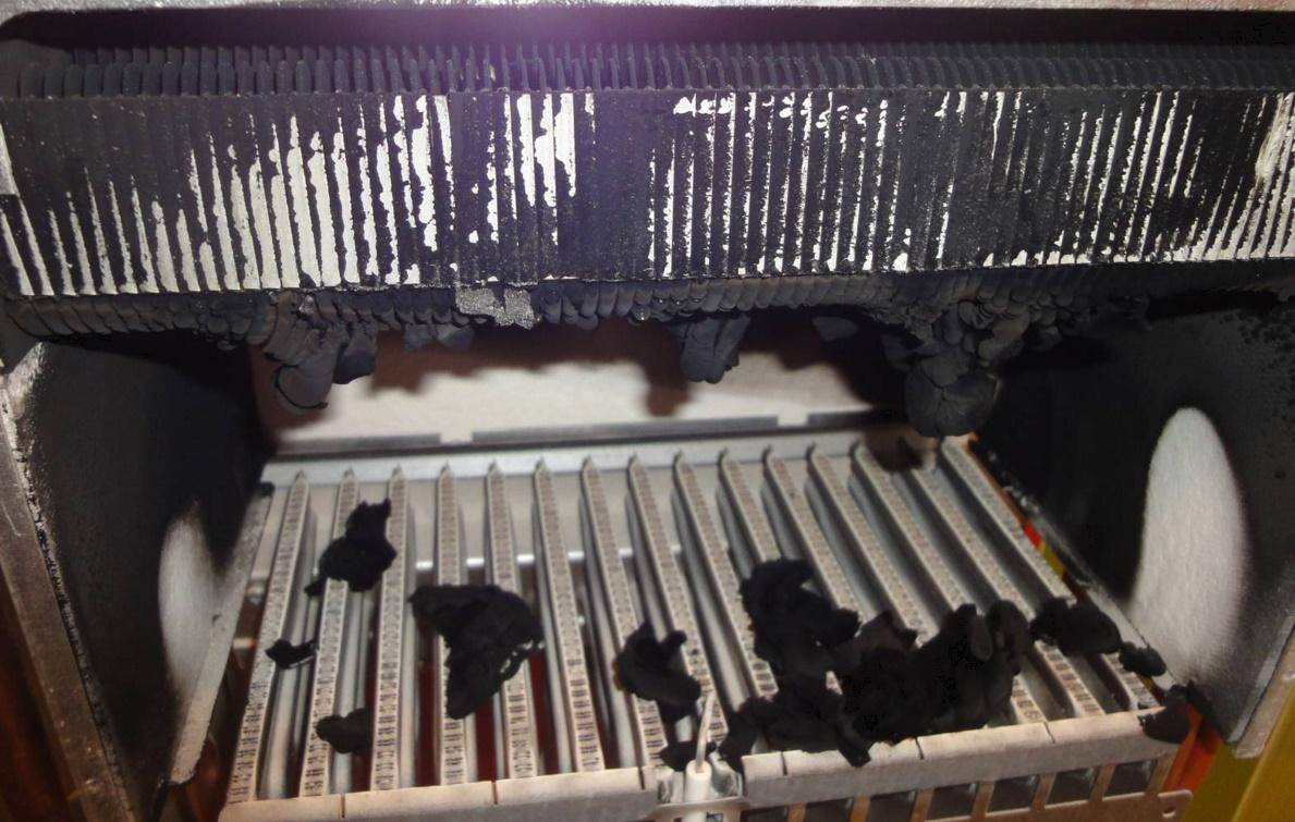 - Глядя в смотровое окно, обнаружили следы копоти.