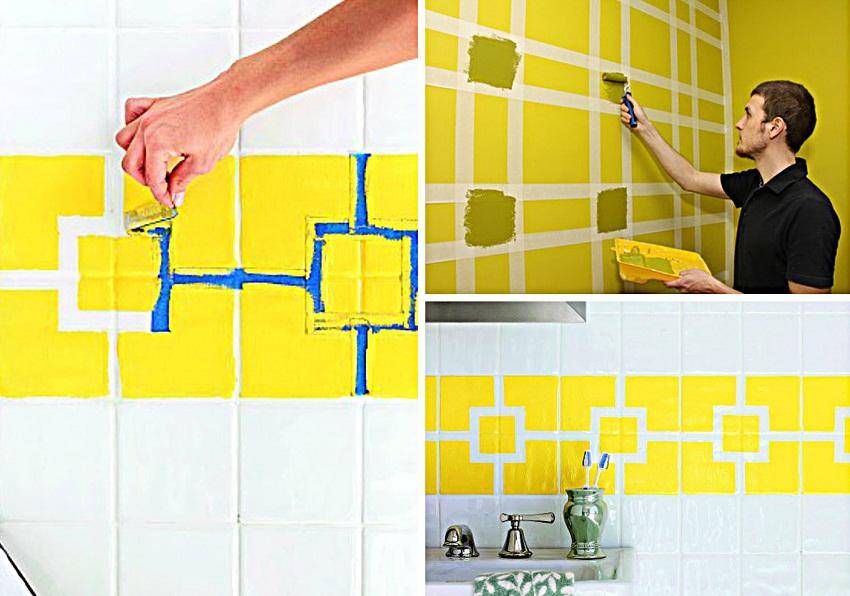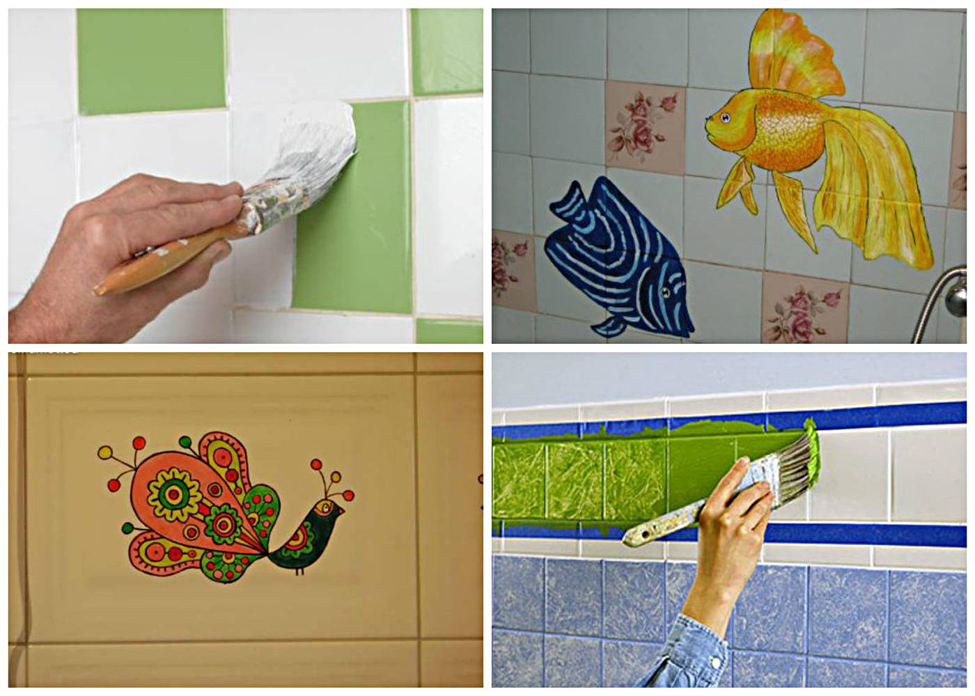 Этот вариант напоминает предыдущий. Но отличается выборочным покрытием плиток, то есть изначально мастер выбирает, какие поверхности будут подвергаться переделке, а какие нет. К примеру, под закрашивание могут пойти только плитки с рисунком или находящиеся в определённом месте.