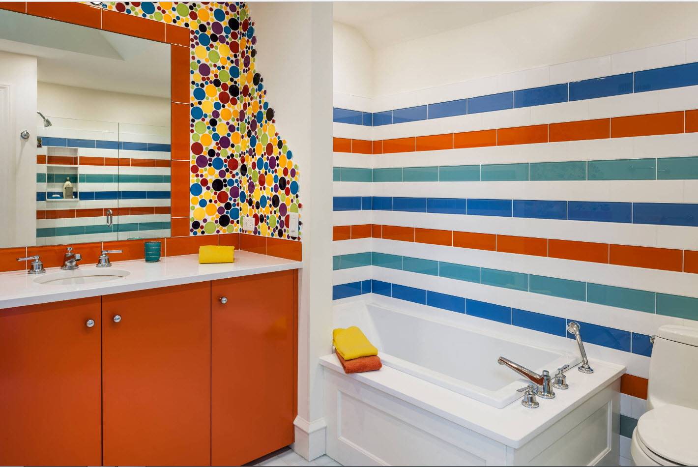 Здесь количество вариантов для дизайна зашкаливает. Мастера полностью покрывают плитку узорами или превращают их в акцентный элемент интерьера.