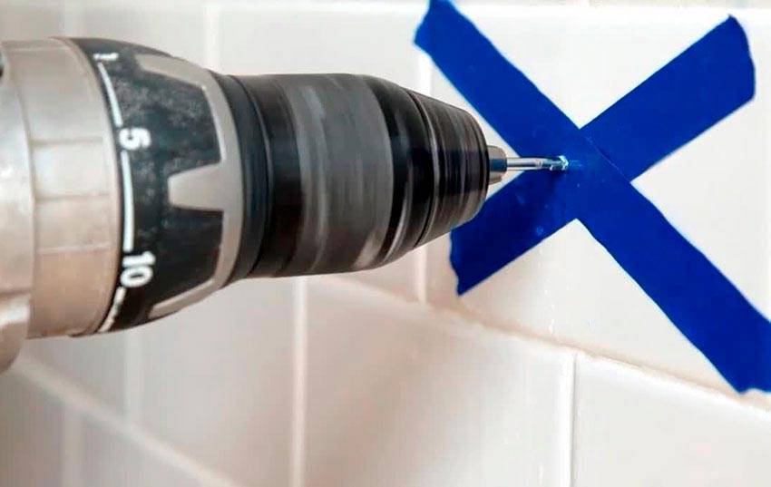 Главное условие для качественной работы – обеспечить точную постановку сверла в выбранном месте, чтобы оно не смещалось. Для этого наклейте скотч, и инструмент не будет скользить по глянцевой поверхности. Следите, чтобы под плиткой не было пустот, иначе появятся трещины