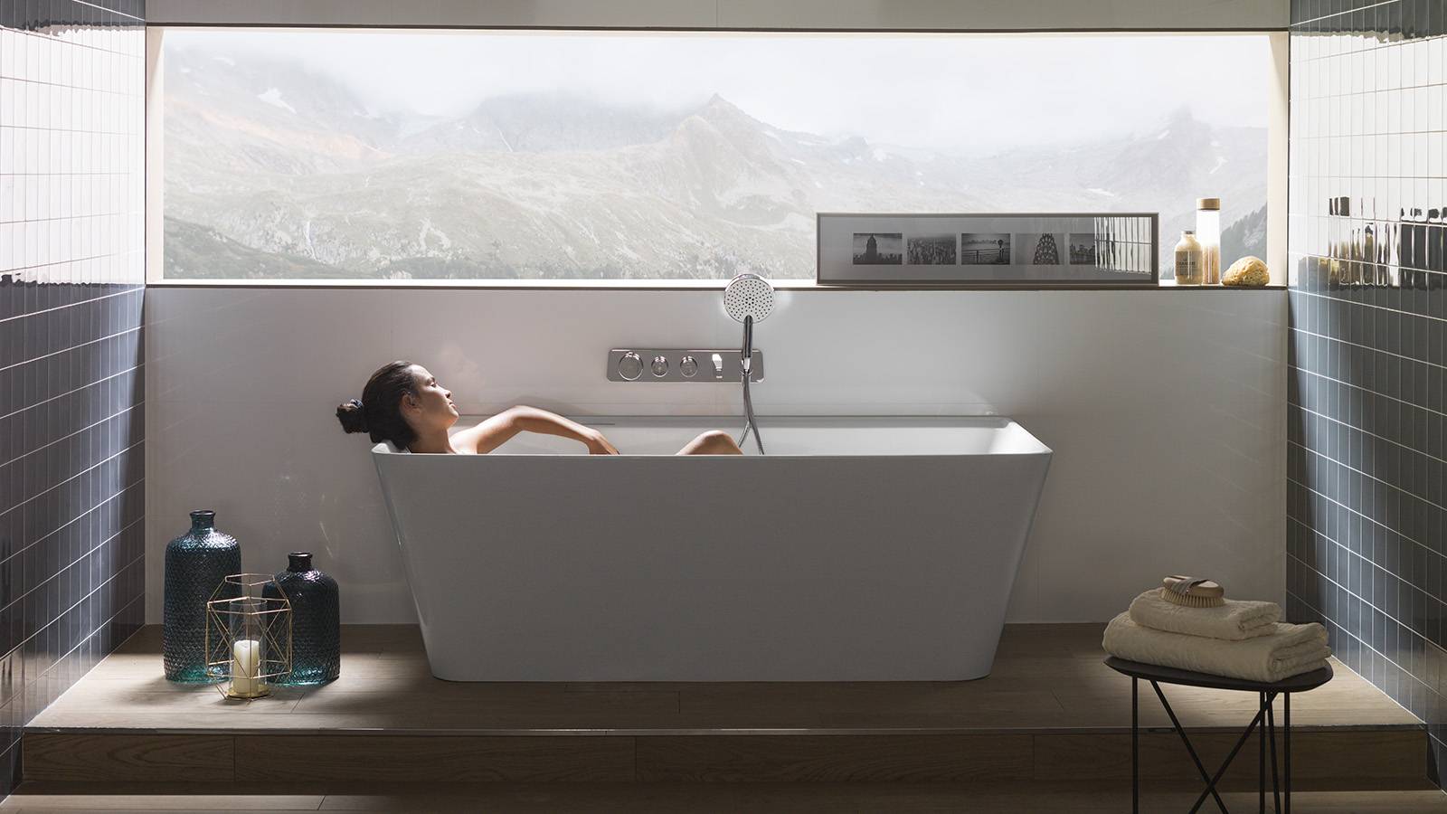 Однако, ванна требует больше места, особенно в случае отдельно стоящих ванн. Если с наличием достаточного пространства нет проблем, идеальным вариантом станет максимальное количество элементов дизайна, таких как внушительная отдельно стоящая ванна Pure Line, также доступная в матовом белом цвете, или ванна Tono, созданная Foster+Partners.