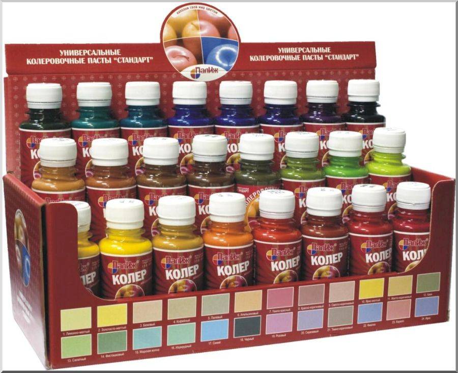 - Широкая цветовая палитра позволяет подобрать вариант на любой вкус. Кроме того, вы может приготовить нужный вам оттенок в специальном автомате.