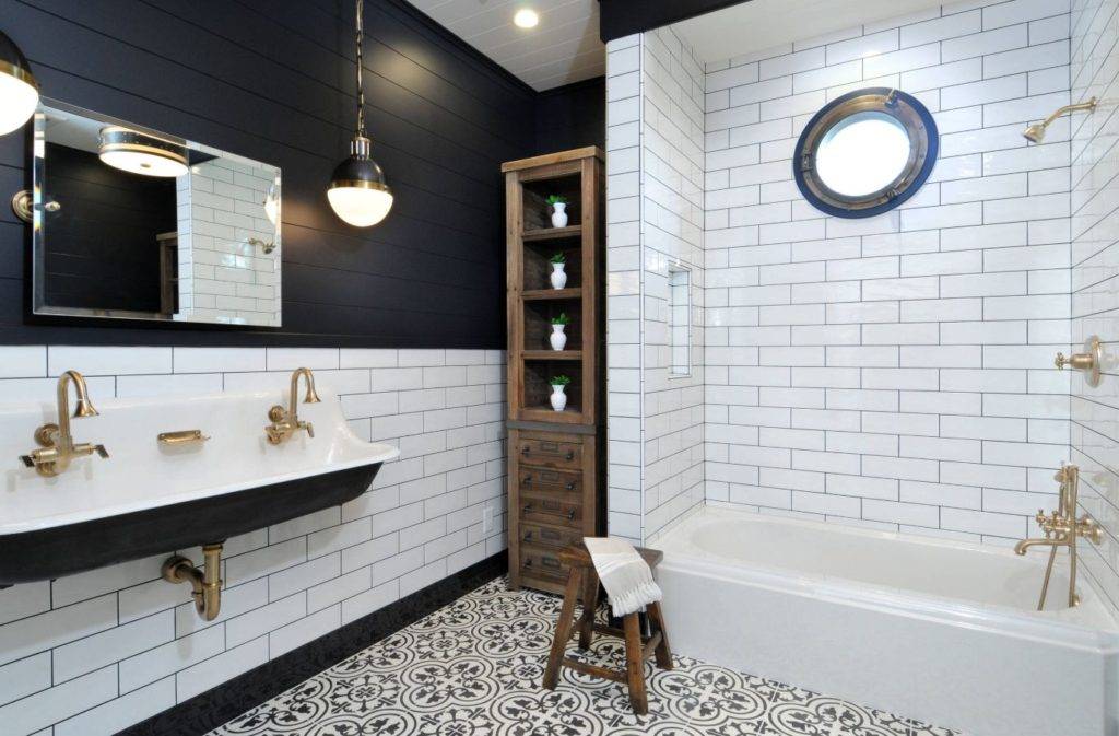Важным элементом ванной комнаты в стиле нью-йорк является правильно подобранная плитка, которая поможет вам создать желаемую атмосферу в комнате. Черно-белая шахматная доска на полу идеально подойдет, а также мрамор. Также приветствуются витиеватые мозаики. Незаменимый элемент эстетики Нью-Йорка — декоративные планки и лепнина.