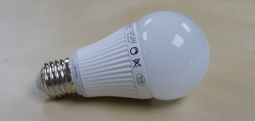 Для светодиодных ламп 220В светорегулятор выбрать весьма просто. На упаковке обычно указано, диммируемая модель, либо нет. Если маркировка свидетельствует о том, что светодиодная лампа диммируемая (как на фото ниже), то регулятор можно применять как для обычных лампочек. Также светодиоды могут управляться при помощи специально разработанного для данного типа источников освещения пульта дистанционного управления