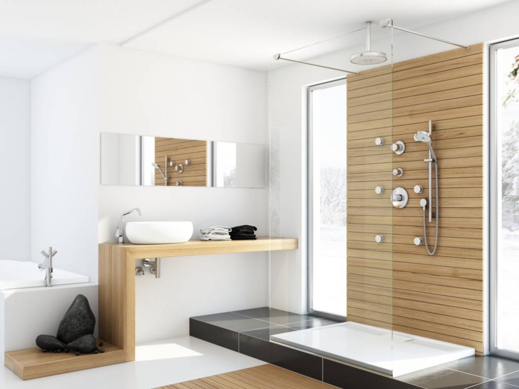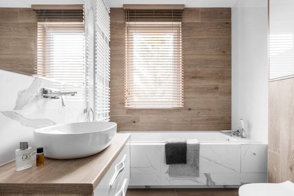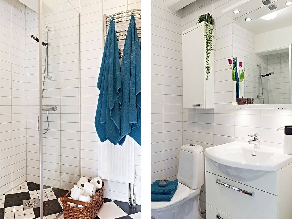 Одним из наиболее модных стилей, которые хорошо раскрываются в больших или малогабаритных помещениях, является скандинавский стиль. Отделка белого цвета может быть дополнена элементами из дерева и небольшим количеством яркого декора. Свежий и стильный интерьер помогает визуально расширить пространство ванной комнаты.