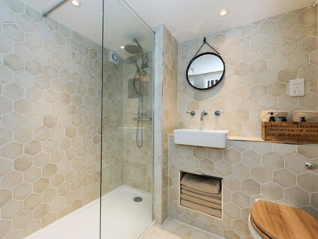 Что касается пола, то керамические, каменные и стеклянные плитки популярны, потому что они водонепроницаемы. Вы можете либо выбрать нейтральный дизайн плитки для душа, который соответствует общему минималистскому стилю, либо выбрать уникальный привлекательный дизайн, дополняющий столь же привлекательную заднюю стену.