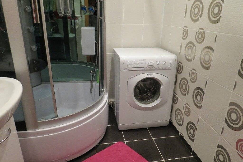 Существует тенденция совмещать санузлы. Такое решение не всегда целесообразно. Особенно, если в квартире проживает несколько человек, то долго находиться в ванной будет сложно. В этом случае лучше продумать вариант дизайна ванной комнаты с душевой кабиной и стиральной машиной без унитаза.