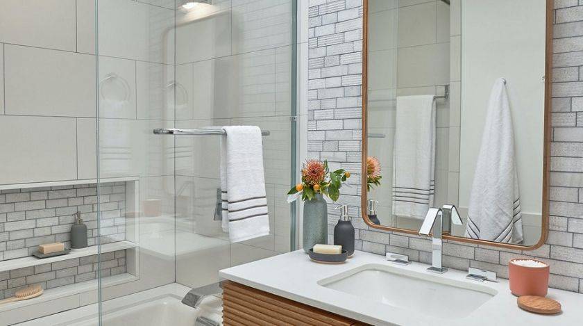 Объединим некоторые основные моменты статьи. Подводя итог, можно сказать, что светлые тона, маленькая плитка, четкие и прямые линии в интерьере, зеркальные поверхности и, конечно же, отсутствие лишних вещей для дизайна ванной комнаты в маленькой хрущевке – идеальные решения.