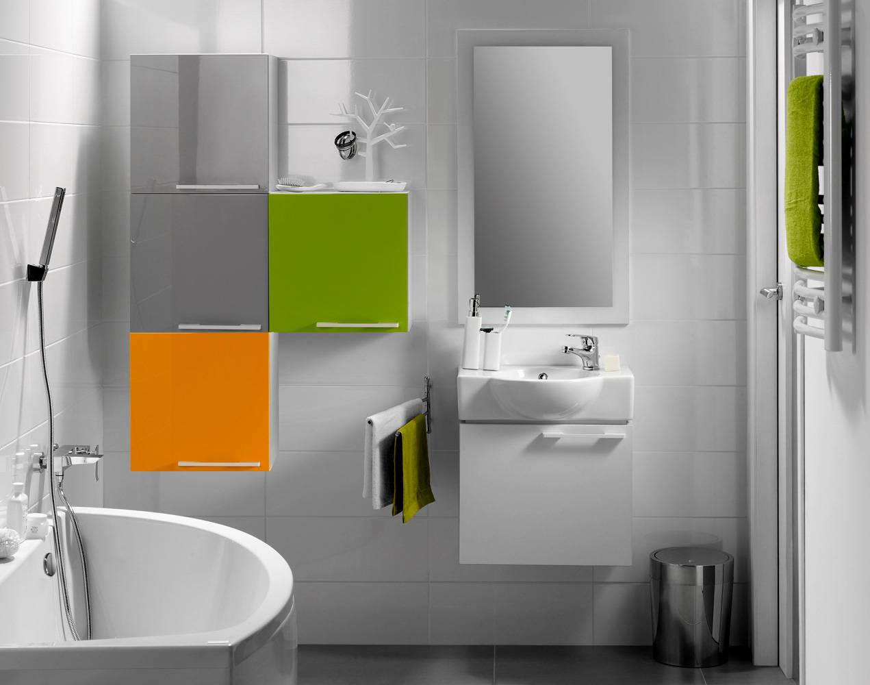 Чтобы разместить косметические средства, продумайте небольшую полку рядом с зеркалом. Крепите емкости для зубных паст и мыла на стену, чтобы они не занимали пространство на мойке. Если под ванной есть пространство, поставьте туда миску, куда будете складывать белье.