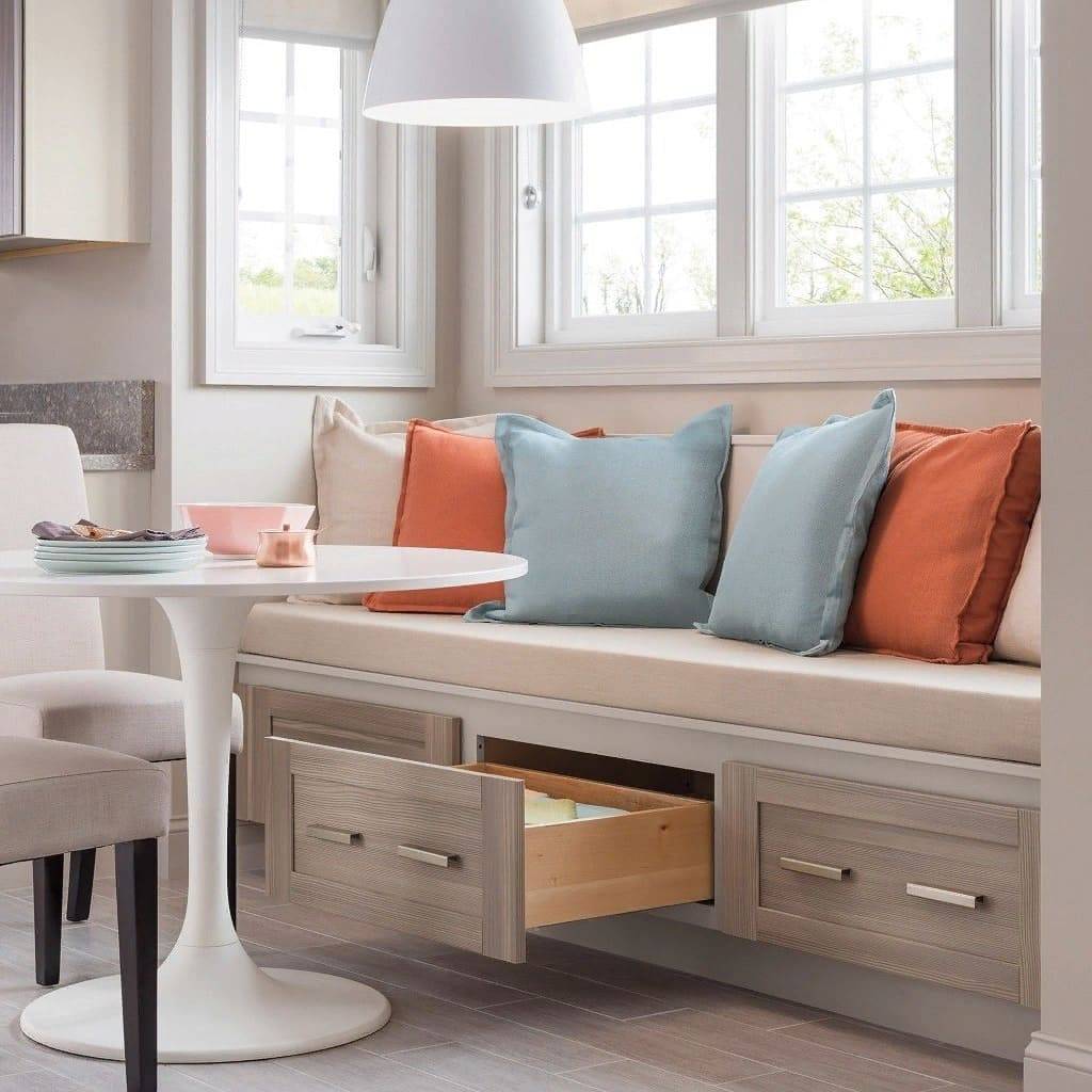 Месторасположение кухонного дивана зависит от его предназначения и функционала, геометрии кухни и ее интерьера. Диван не должен мешать свободному передвижению, однако и пользоваться им должно быть удобно.