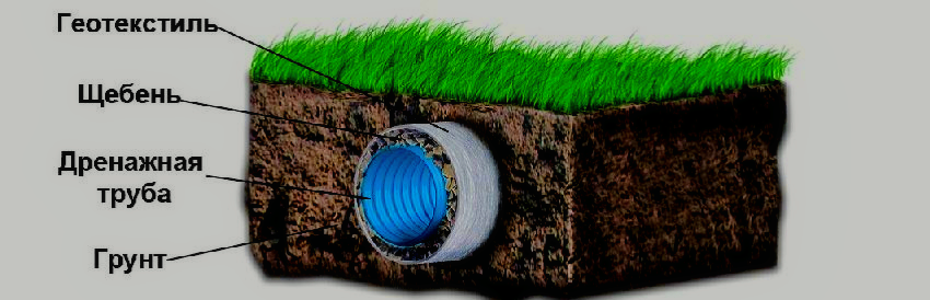 Важно! Укладка подземного водоотвода необходима в болотистой местности или в случаях, когда грунтовые воды подходят близко к поверхности