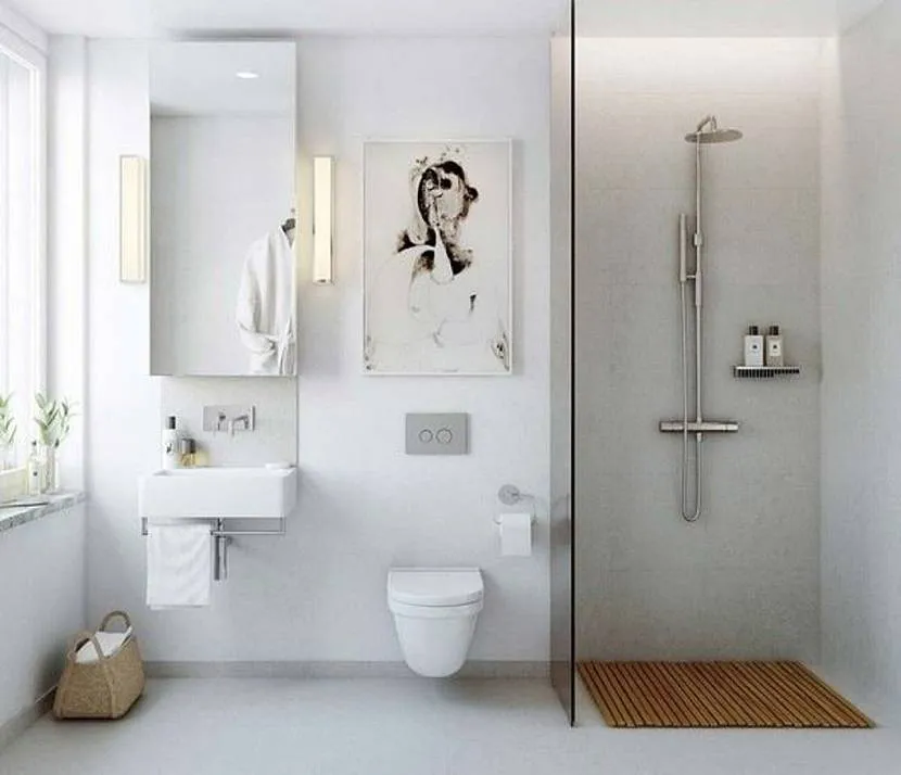 Небольшая белая душевая с подвесным унитазомИсточник stargate-rasa.info