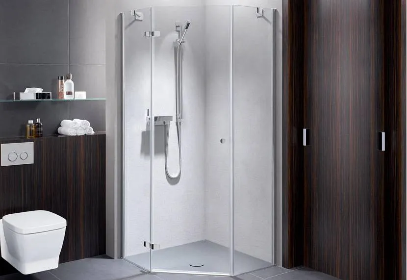 - По типу конструкции кабинка может быть угловой, прямоугольной и даже открытой. Особенно эти варианты актуальны в небольших по площади помещениях.