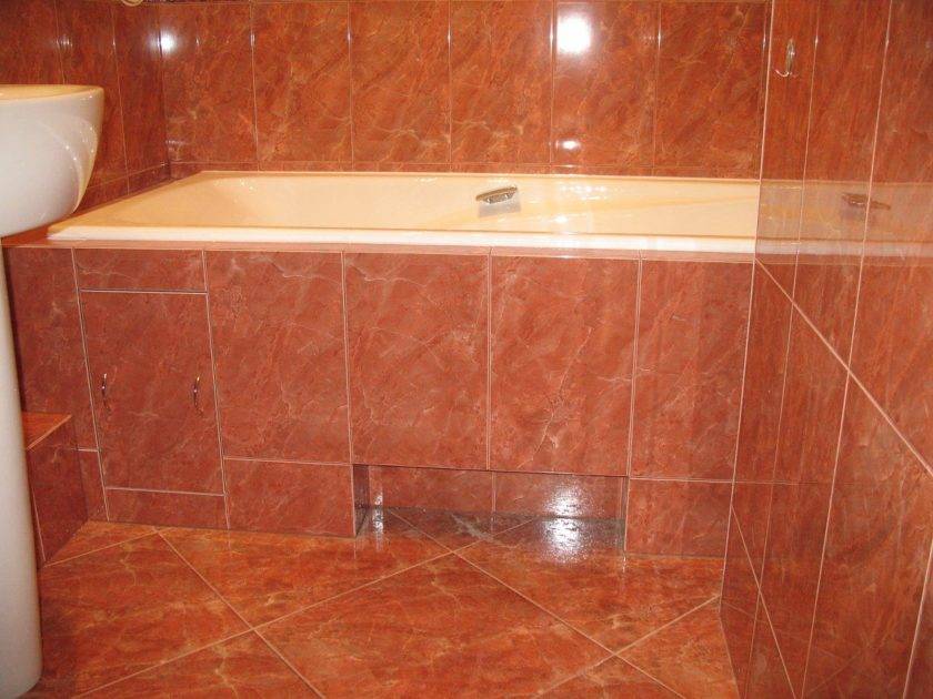 - строят экран под ванну из плитки с люком, открывающим доступ в пространство под ванной;