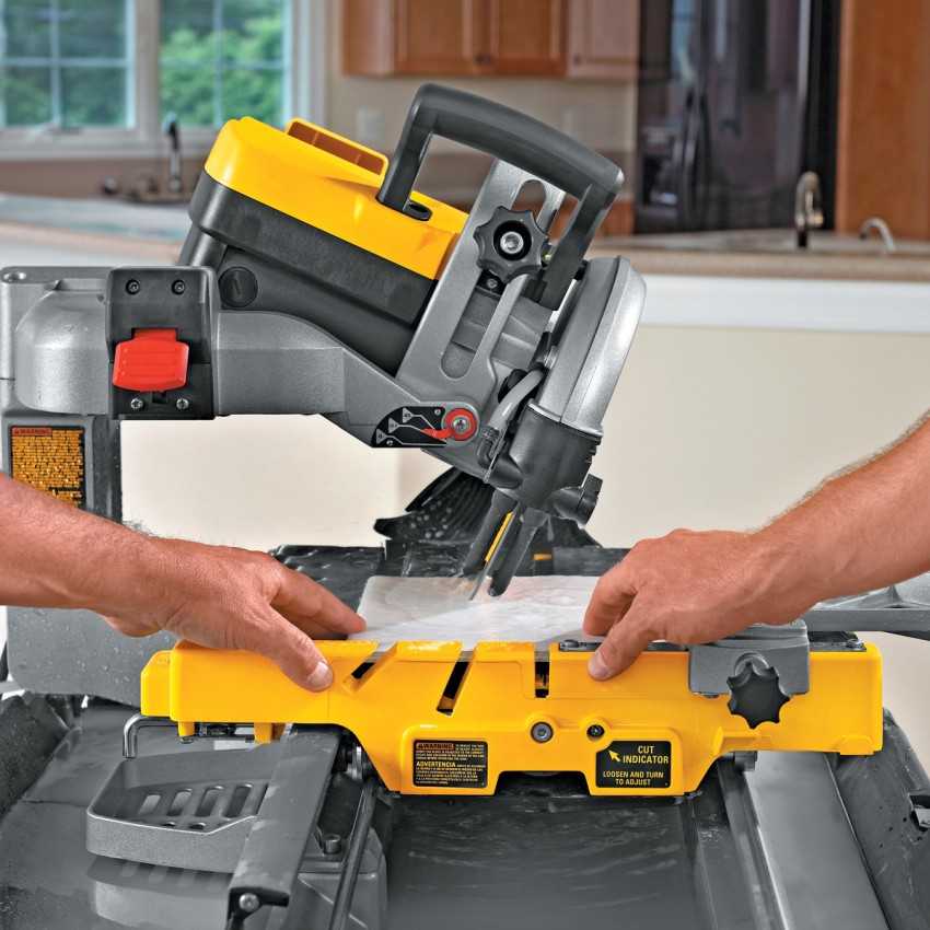 - DeWalt – производитель электрических инструментов для нарезания плитки в домашних условиях или на стройке. Его изделия относятся к категории профессиональных и бытовых, имеют хорошие характеристики – высокую мощность, большое число оборотов, приличную глубину пила (от 3 см).