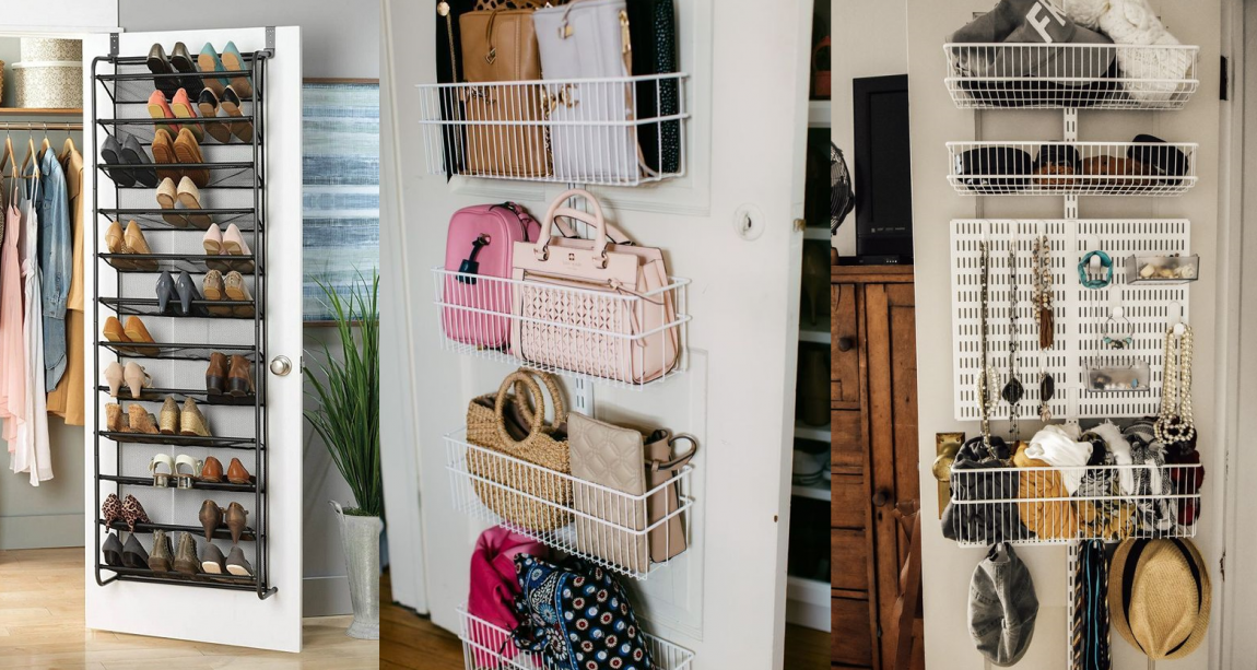 Как дополнительную поверхность для хранения можно использовать не только внутреннюю сторону двери шкафа, но и дверь в комнату. Вещи при этом остаются на виду, но согласитесь: любая организованная система лучше вещевого хаоса.
