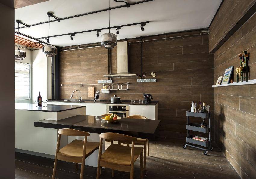 Настенный керамогранит в отделке стен кухни: фото варианты