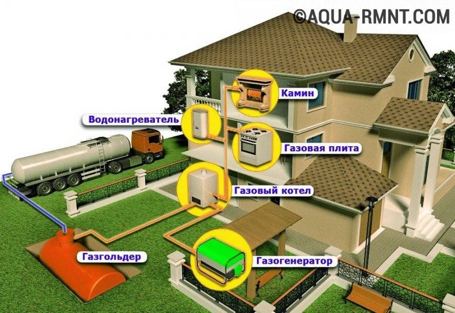 В системе газового отопления неотъемлемой его частью является использование газового котла или газовой колонки. Это оборудование работает либо на чистом сжиженном пропане, либо на его смеси с бутаном. Обработанный газ под высоким давлением принимает жидкую форму, после чего им заполняются специальные металлические баллоны.