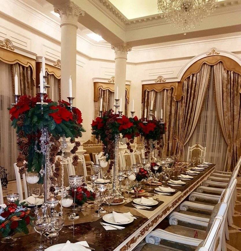 На первом этаж располагается огромная столовая зона. Здесь стоит длинный стол с более чем дюжиной стульев. Супруга Стаса Михайлова регулярно организует грандиозные торжества, куда приглашаются самые популярные знаменитости российского шоу-бизнеса. Но семья всегда находит время для самых родных и близких – родителей, родственников, друзей семьи, не связанных с творчеством. Помещение столовой зоны обустроено богато, здесь и колонны в потолок, и высокие окна, украшенные прекрасными и роскошными портьерами.
