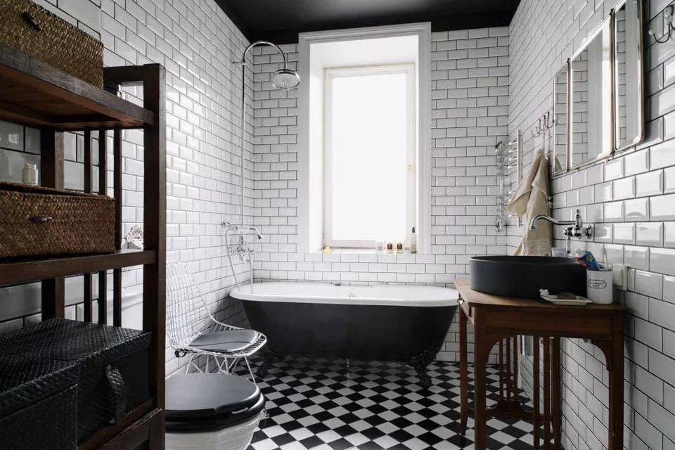 Допускается класть крупный материал даже в помещениях с площадью в 3-4 кв. м, поскольку визуально он не уменьшает пространство. А если сделать отделку в виде горизонтальных линий разных цветов, то это даже поможет создать впечатление более просторного помещения в малогабаритных ваннах.