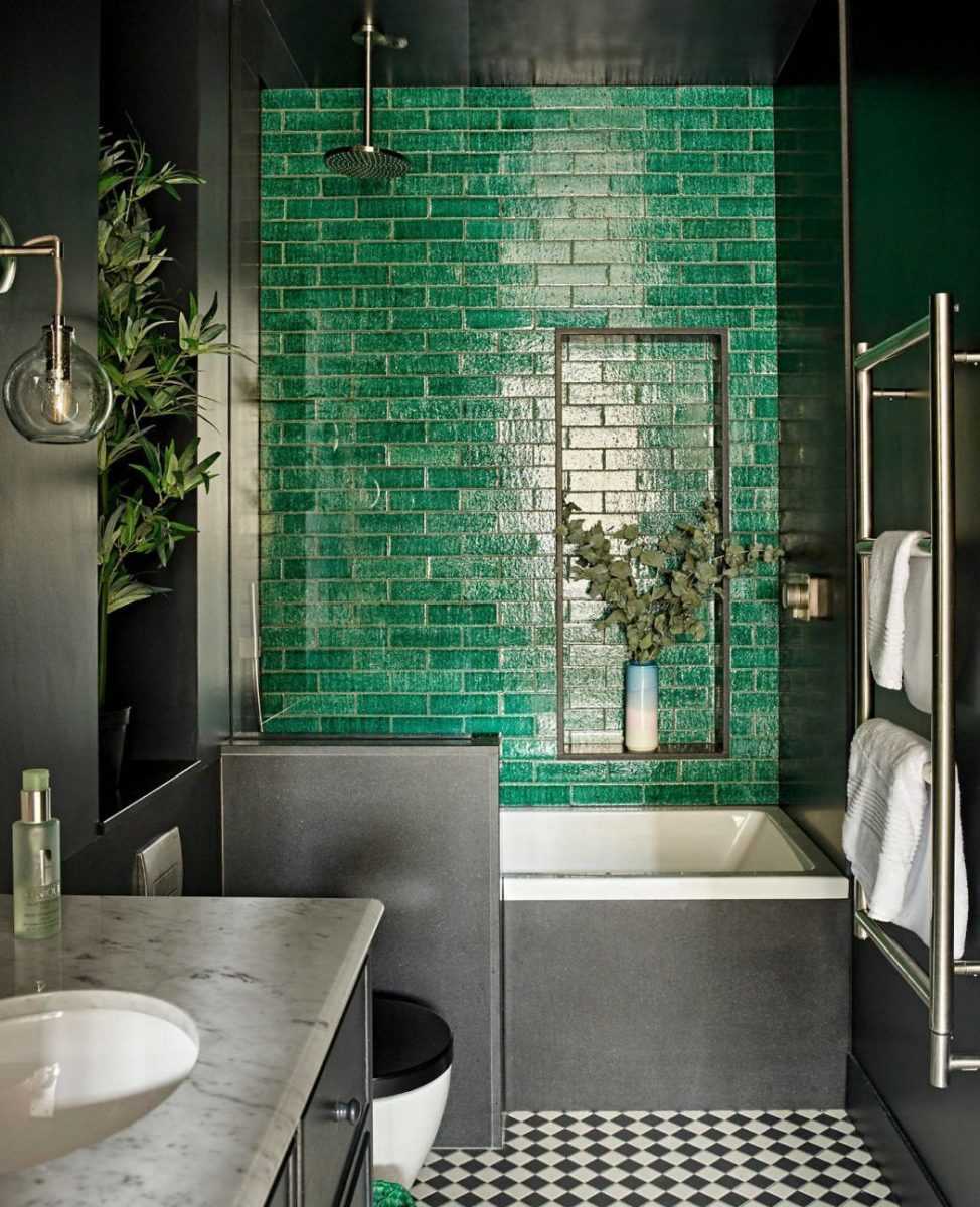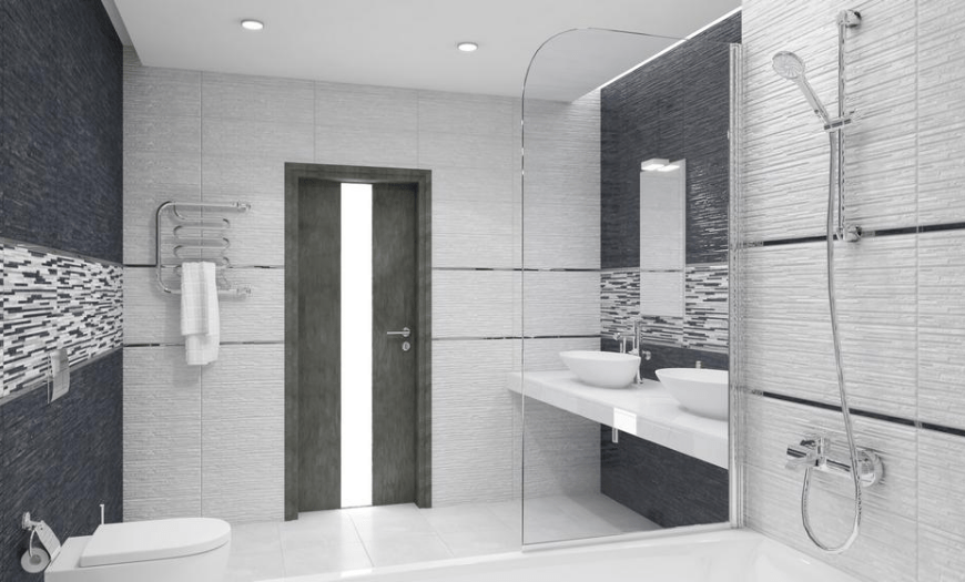 Чем меньше пространство ванной комнаты, тем светлее должна быть плитка. При использовании темных оттенков понадобится дополнительная подсветка поверхностей (точечная или светодиодная).