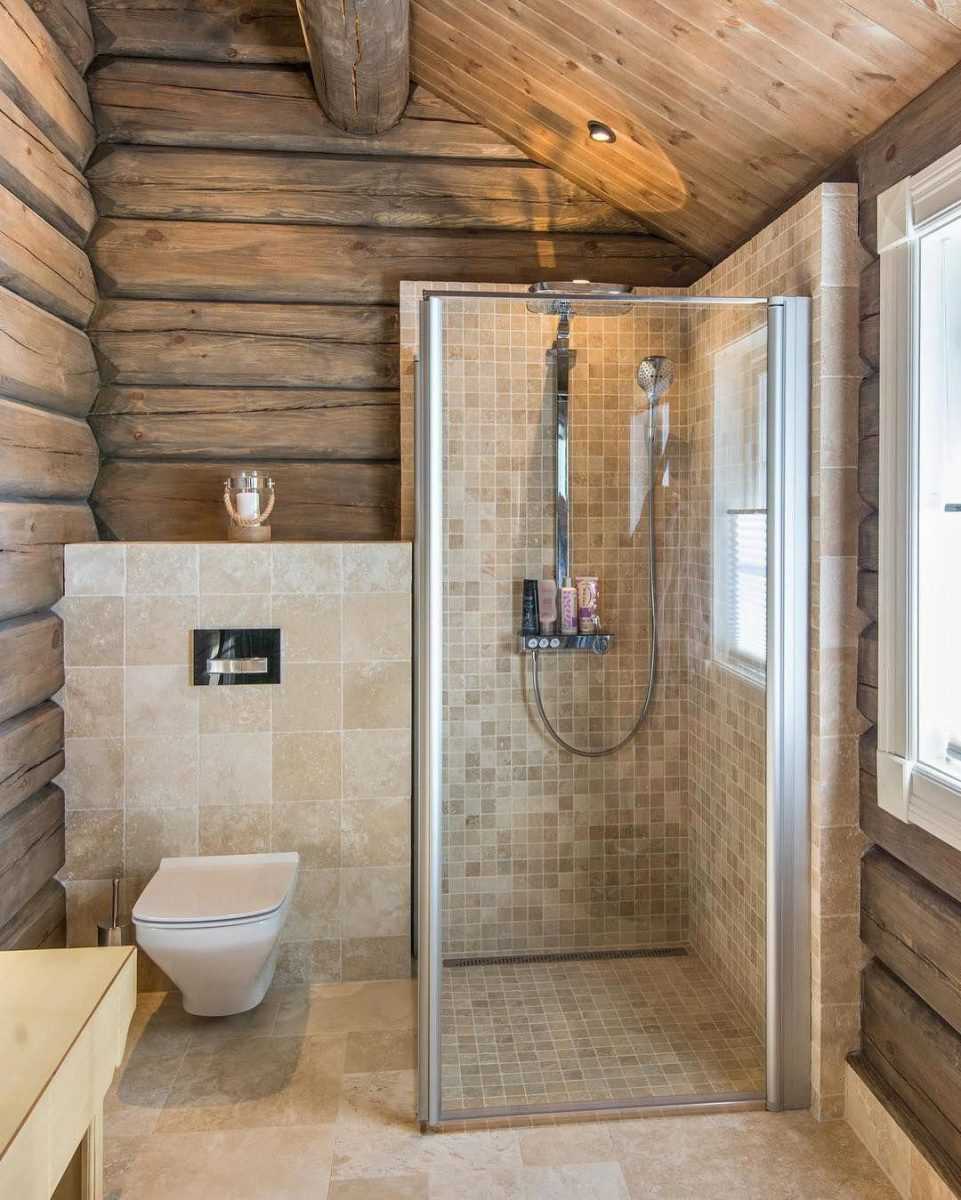 Наряду с плотными, гладкими материалами для отделки ванных используют деревянный брус, вагонку. Они придают помещению изысканности, а запах хвойных пород деревьев способен оказывать лечебный эффект.