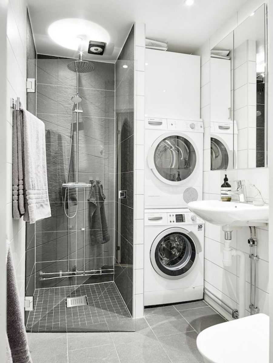Если таки необходимо установить в санузле стиральную машину, то рассматривайте машину, имеющую боковую загрузку, небольших размеров. Хорошо будет, если стиральную машину для экономии места расположить под раковиной или в тумбе между раковиной и унитазом.