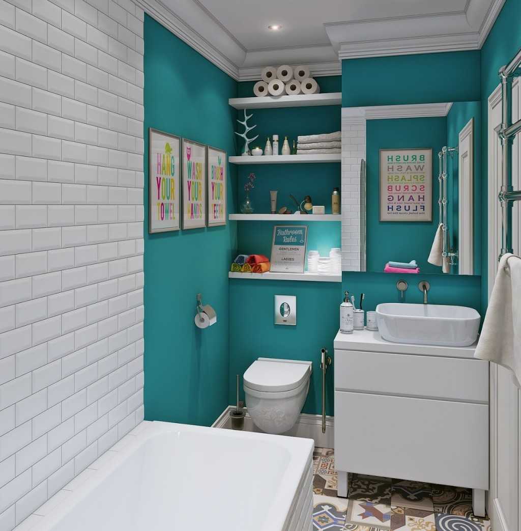 Цветовые акценты – прекрасная возможность для зонирования пространства . Например, уголок с ванной или душевой кабинкой можно выделить зелеными, голубыми, бирюзовыми оттенками, а место умывальника выделить контрастным цветом.