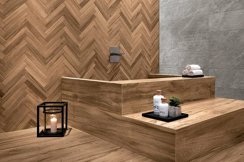В то же время тенденция к созданию естественной среды поддерживается моделями, подобными дереву или камню — керамическая плитка становится все более элегантной. Другая актуальная тенденция — использование больших форматов и размеров, особенно для плиток, которые восстанавливают красоту натурального камня, предлагая большую прочность и меньшие затраты.