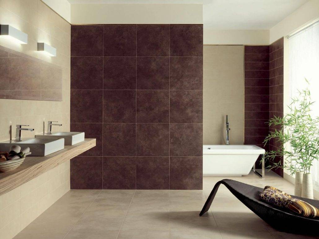 Если обычные технологии позволили получить форматы максимум 0,60 х 1,20 / 0,80 х 0,80 м, технология ламинирования позволяет получать крупные керамогранитные плитки, которые придают благородство камню при оформлении ванной комнаты.