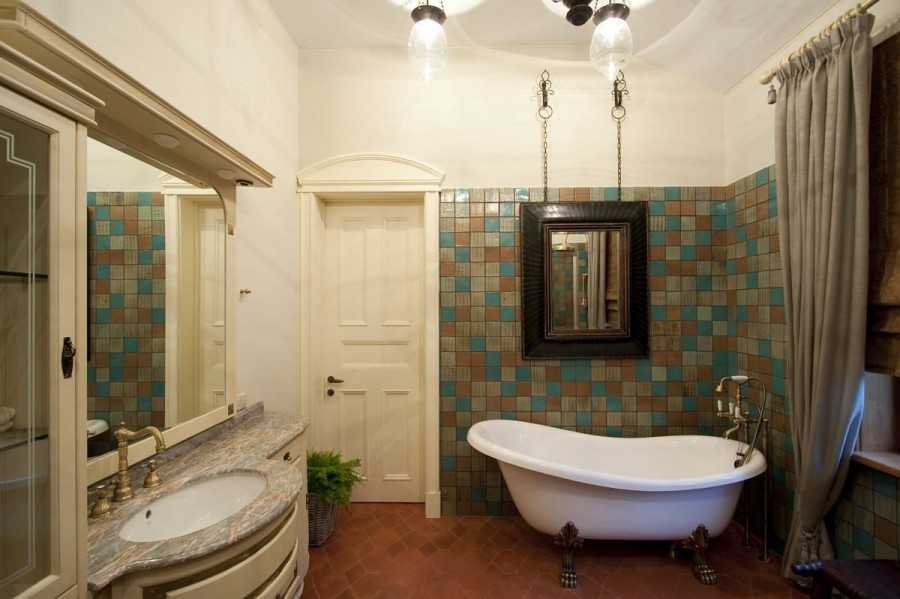 При оформлении ванной комнаты важно учитывать общую стилистику дома, чтобы интерьер выглядел гармонично