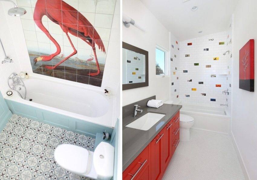 - не бойтесь экспериментировать с различными цветовыми комбинациями плитки — отдельные участки стены можно выложить плиткой контрастного цвета.