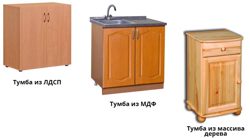 за чет оптимальной циркуляции воздуха срок службы мебели значительно увеличивается. Все виды тумб изготавливаются из натуральных пиломатериалов или различных типов плит с использованием древесной стружки. Дерево всегда очень негативно реагирует на длительный контакт с водой, если к этому добавить отсутствие вентиляции, то срок эксплуатации мебели значительно уменьшается;