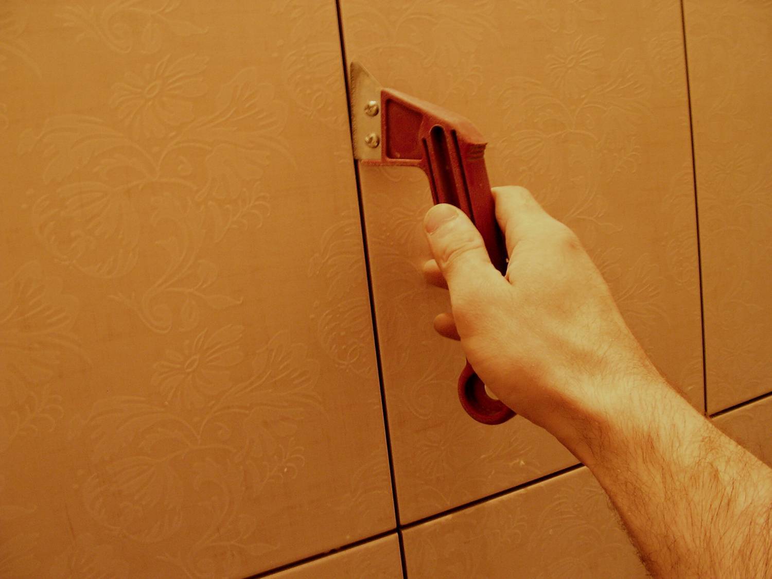 Ликвидация предыдущей плиточной отделки начинается с устранения шовной прослойки. Для этой цели он смачивается водой, оставляется на пару часов для пропитки и затем счищается.