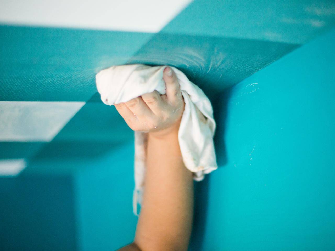Потолок обычно делают первым, поэтому часто приходится сталкиваться с каплями краски на нем. Если краска была в цвет — лучше пятно не удалять вообще, но если его вывести нужно обязательно, попробуйте для начала воду с мылом. Ее будет достаточно для краски на водной основе, особенно если пятна свежие.