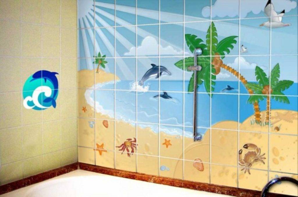 Ими можно заклеить отдельные участки, подбирая под фактический размер кафеля или создать масштабную картину на стену.