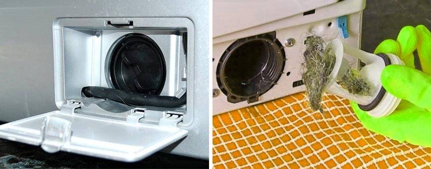 - После слива воды заглядывают в отсек сливного фильтра: при необходимости удаляют из него скопившийся мусор и чистят сам фильтр.